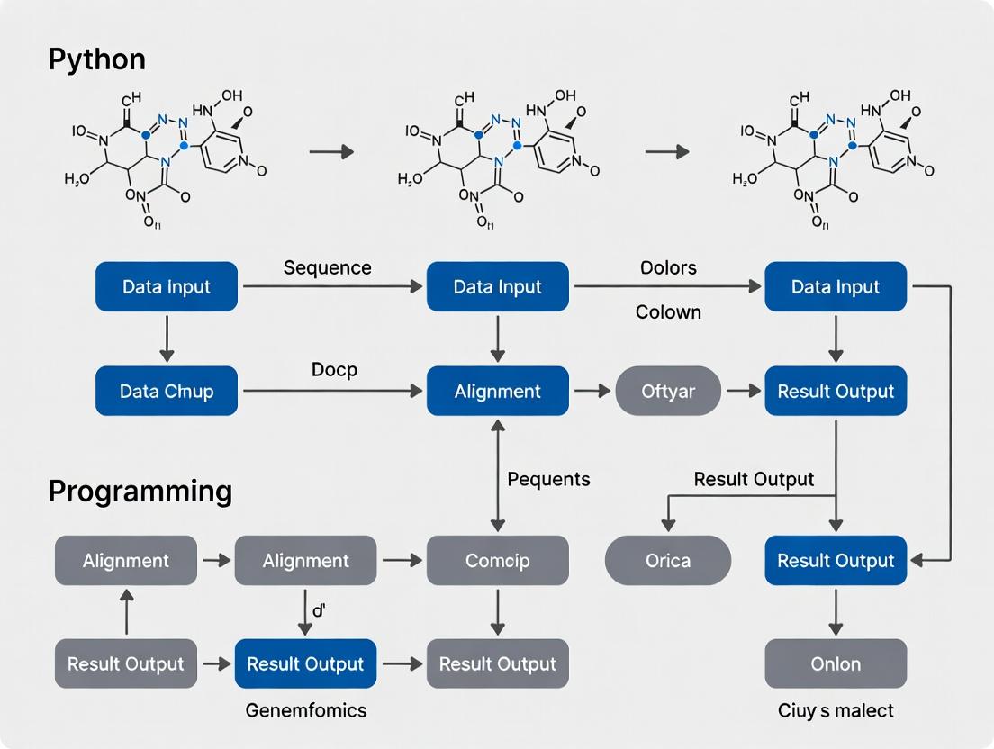 | Biopython | Biological sequence & structure I/O, analysis | Seq, SeqRecord, AlignIO, Entrez |