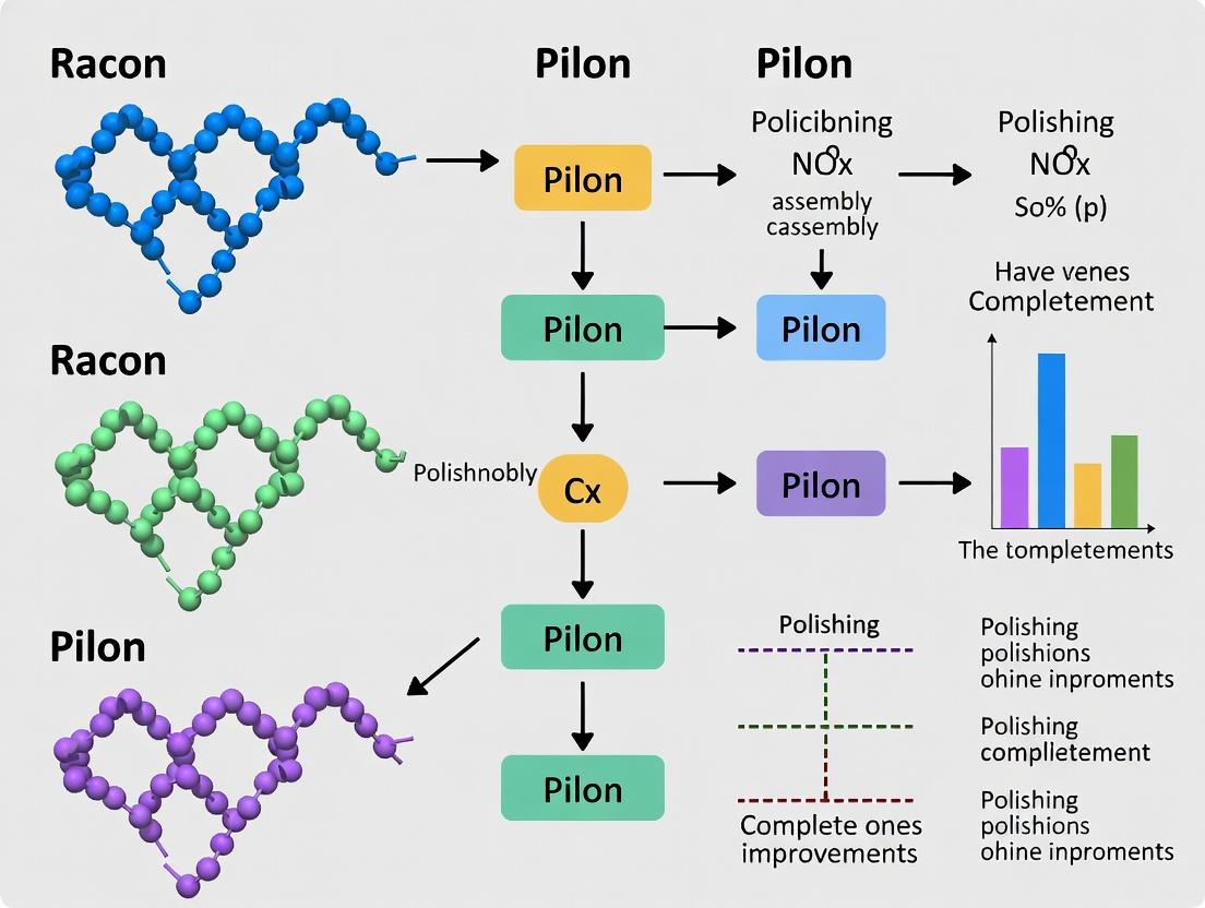 This application note is framed within a broader research thesis investigating iterative polishing pipelines using Racon (long-read-based) and Pilon (short-read-based) for de novo genome assembly improvement. While long-read sequencing generates assemblies with superior continuity, it has higher native error rates. Short-read data offers high accuracy but struggles with complex genomic regions. This hybrid polishing methodology aims to synergize the strengths of both technologies, systematically evaluating the conditions under which sequential and iterative application of Racon and Pilon maximizes consensus fidelity, completeness, and utility for downstream applications in functional genomics and drug target identification.