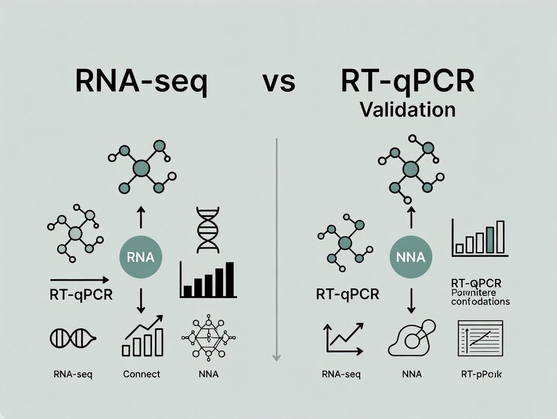 1. cDNA Synthesis: Using the same RNA as RNA-seq, perform reverse transcription with random hexamers and a high-fidelity reverse transcriptase (e.g., SuperScript IV). 2. Assay Design: Design TaqMan hydrolysis probes or SYBR Green primers for targets of interest and housekeeping genes (e.g., GAPDH, ACTB). Ensure amplicons span exon-exon junctions. 3. qPCR Run: Perform reactions in technical triplicates on a qPCR instrument (e.g., QuantStudio 7 Pro). Use a standard curve or ΔΔCt method for absolute or relative quantification. 4. Statistical Correlation: Calculate Pearson correlation between RNA-seq normalized counts (e.g., TPM or log2 fold-change) and RT-qPCR ΔCt or log2 fold-change values.